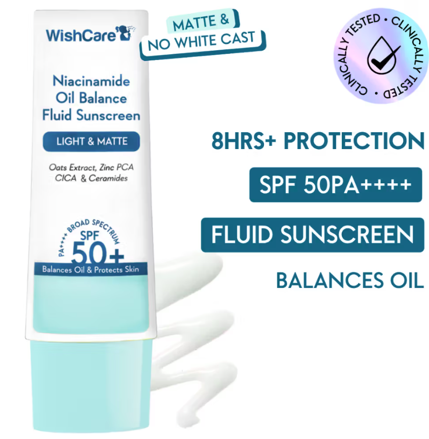 Wishcare’s Niacinamide Oil Balance Sunscreen is a light, fluid sunscreen that absorbs instantly, leaving a matte yet hydrated finish. The addition of niacinamide helps control excess oil and improve skin texture